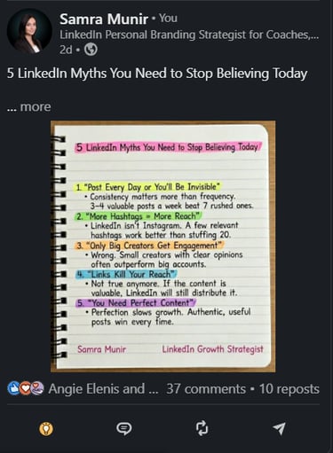 Developed LinkedIn content strategies that turn professional expertise into consistent engagement, inbound leads, and authority for founders and coaches